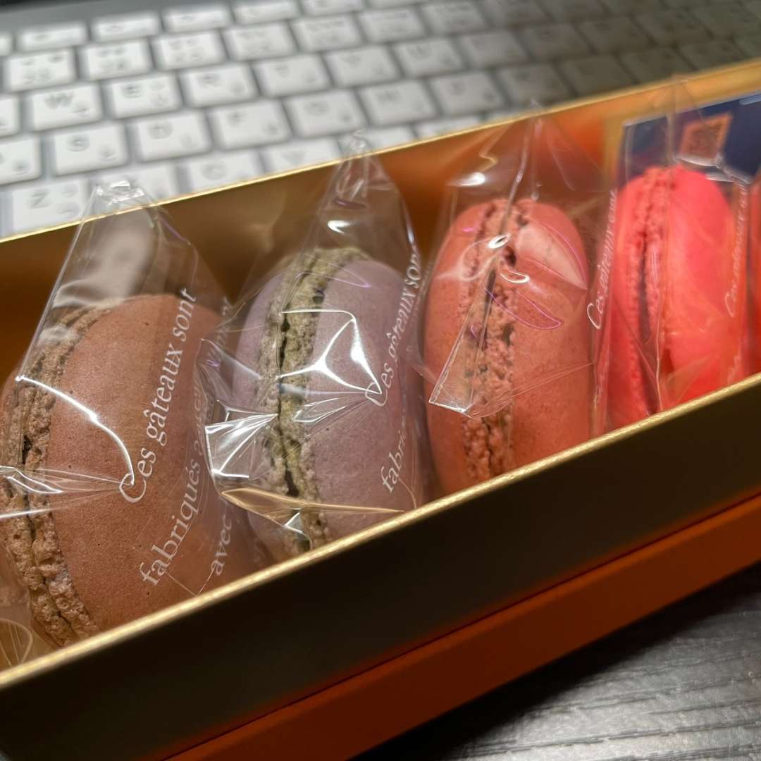 好物のマカロンを食べながら、黙々とブログ更新です♩