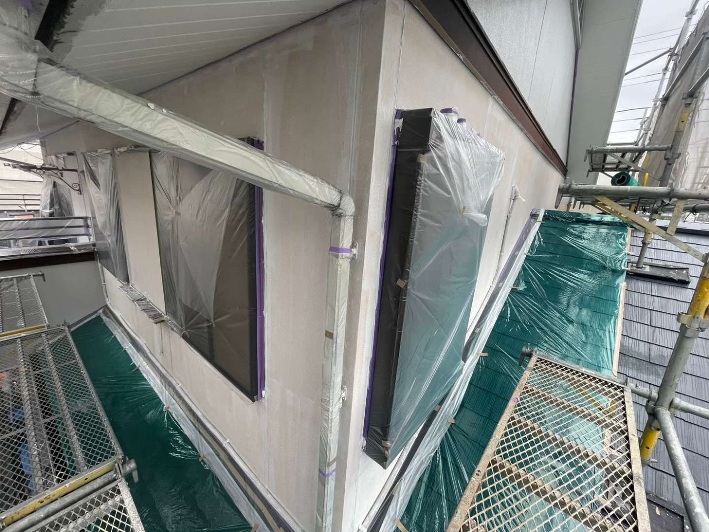 安全な作業を確保するために、外壁周りに足場を設置します。