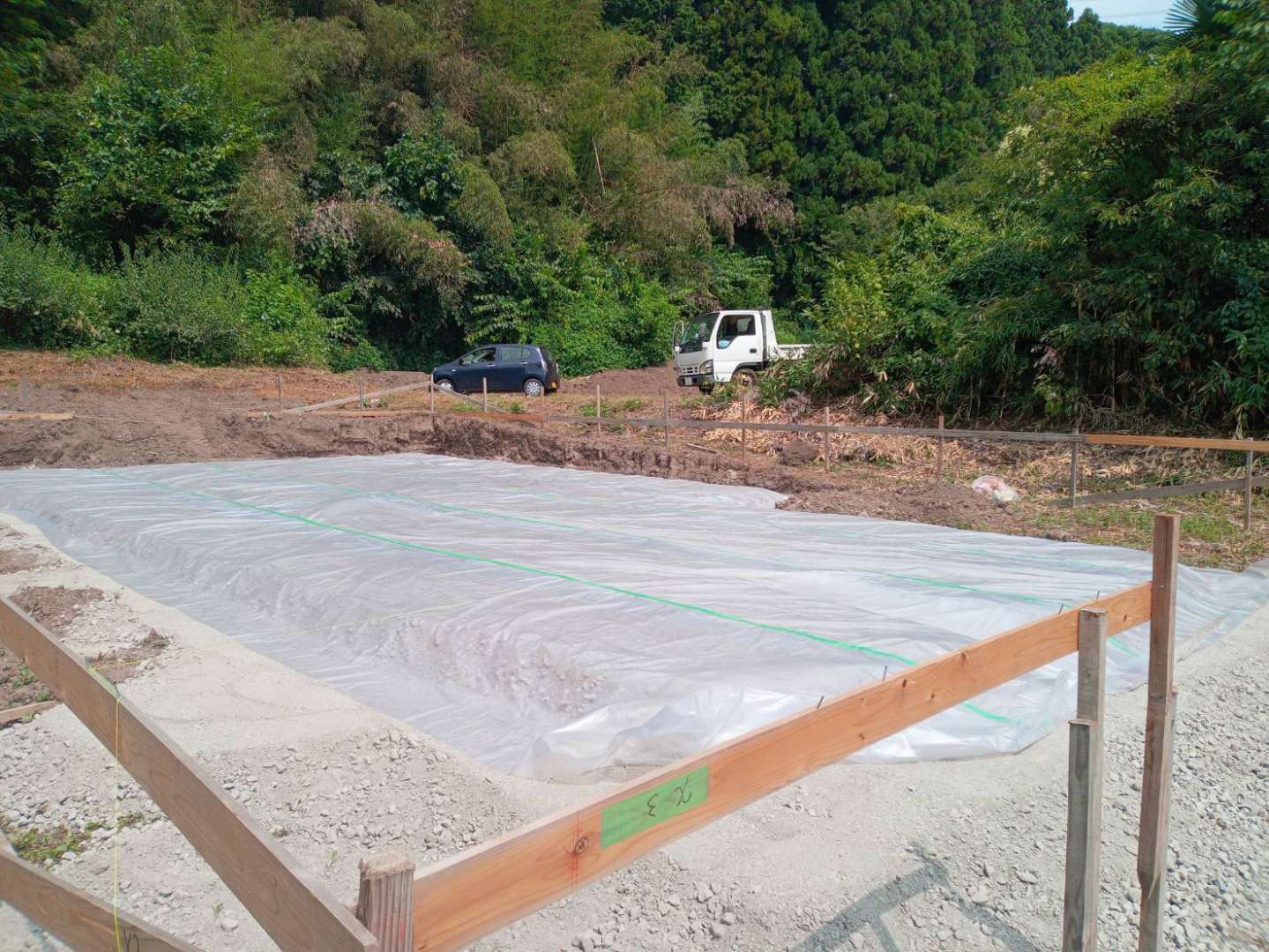 防湿シート敷き ― 湿気を遮断する重要な工程