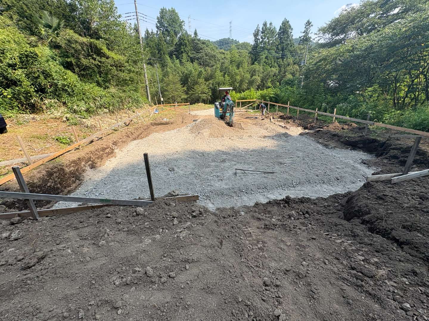 掘削後は、砕石敷きと転圧を行いました。